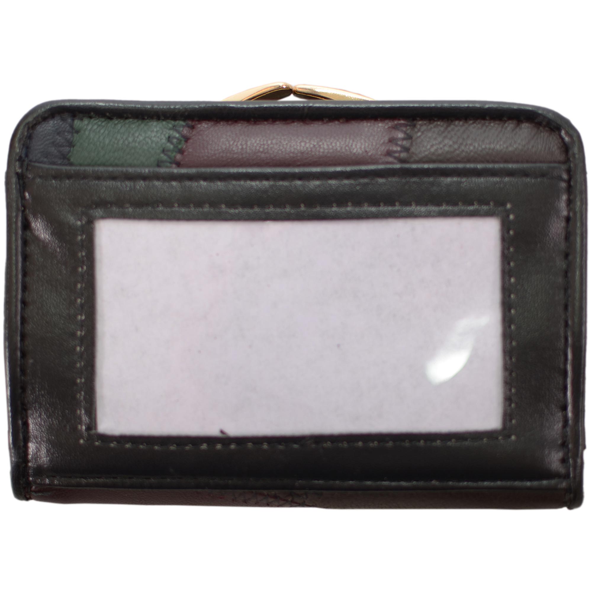 Lorenz real leather and man-made material patchwork purse with popper fastening compartment with card slots, ID window and note sections.