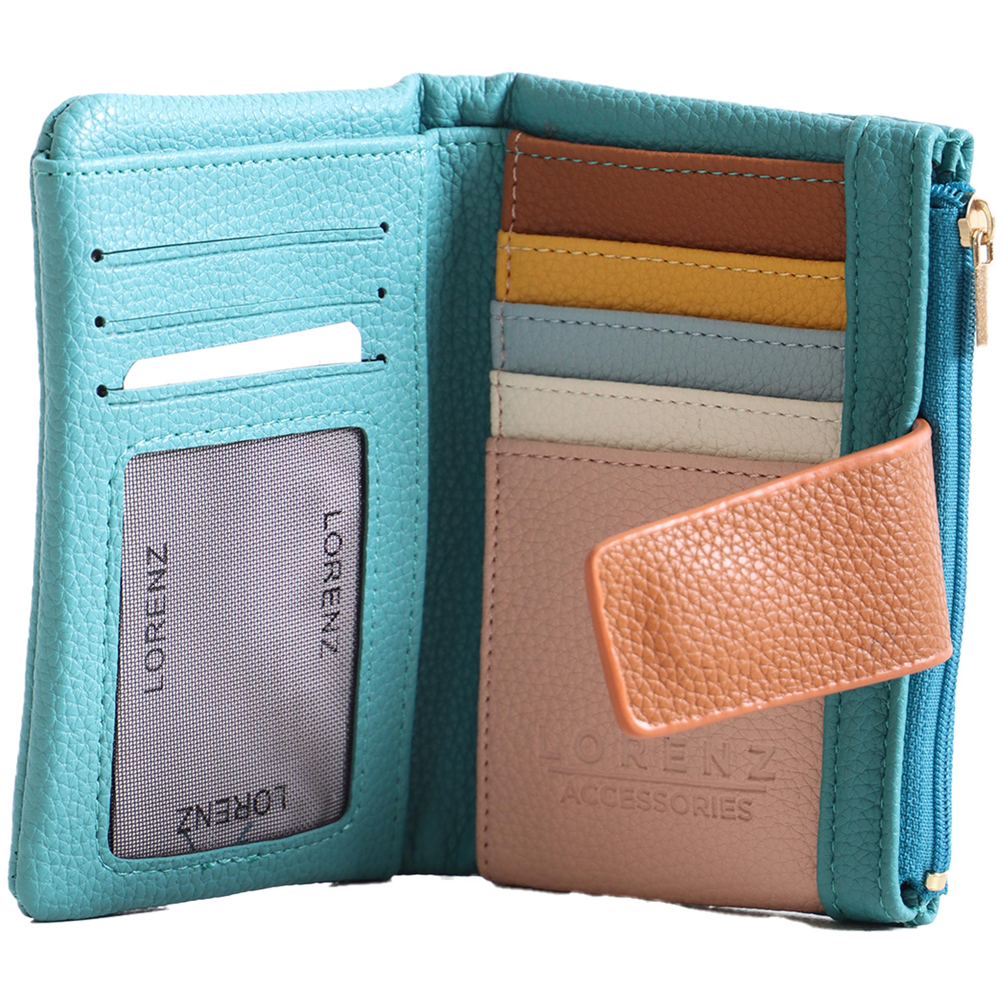 7271 DENIM BLUE SMALL TABBED PURSE WITH MULTICOLOURED CREDIT CARD SLOTS