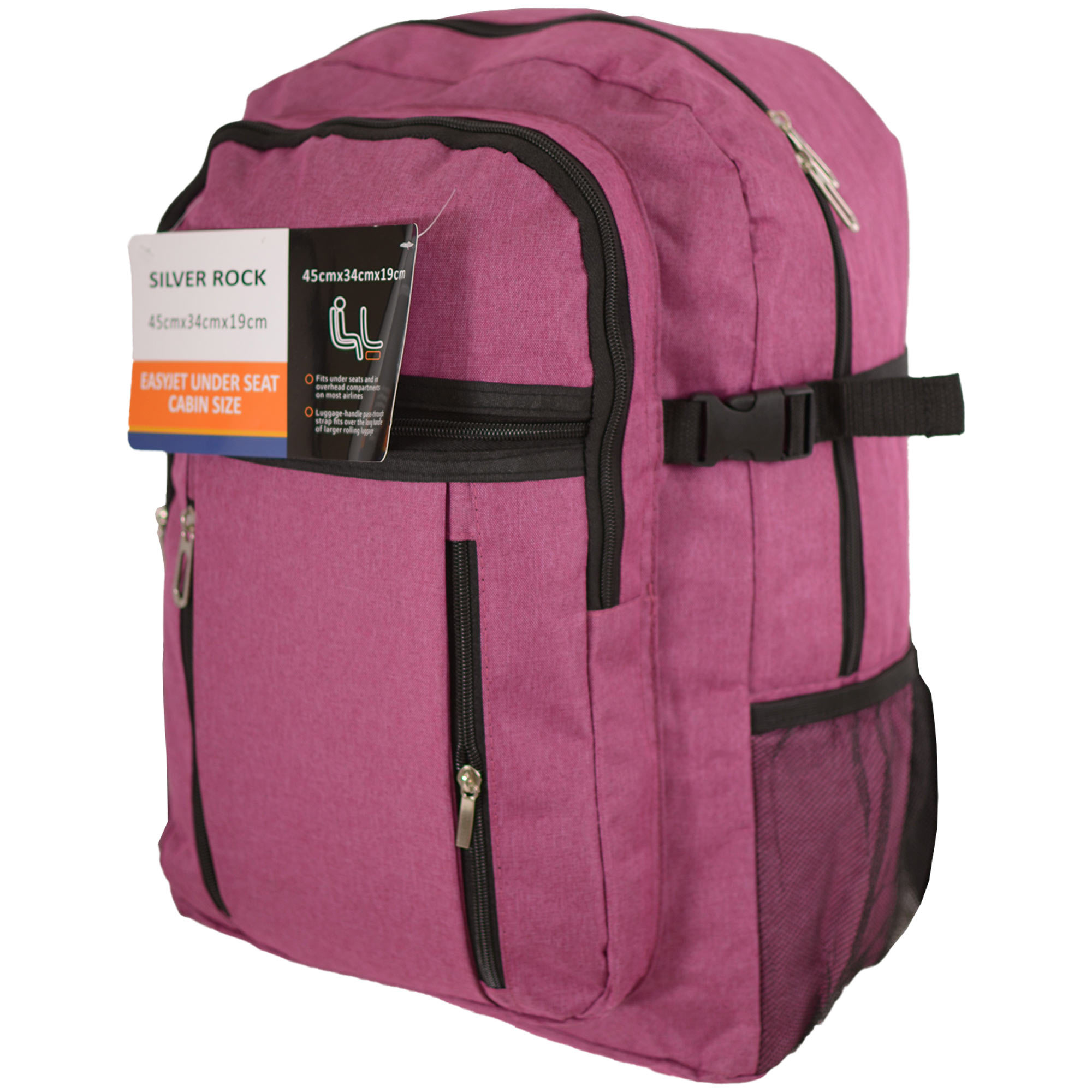 BP-129 DARK PINK EASYJET UNDER SEAT CABIN-FRIENDLY RUCKSACK WITH MULTIPLE ZIPS