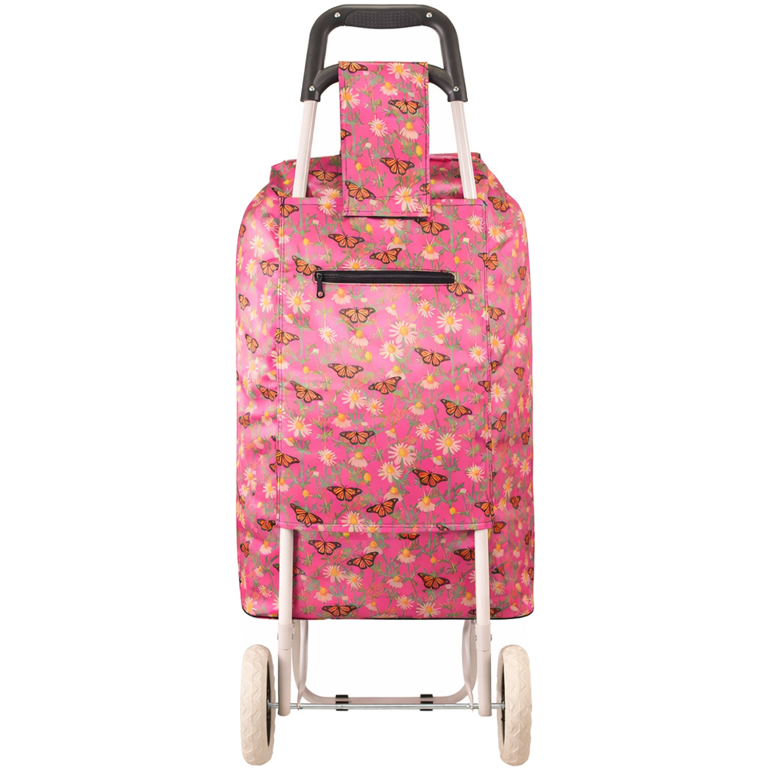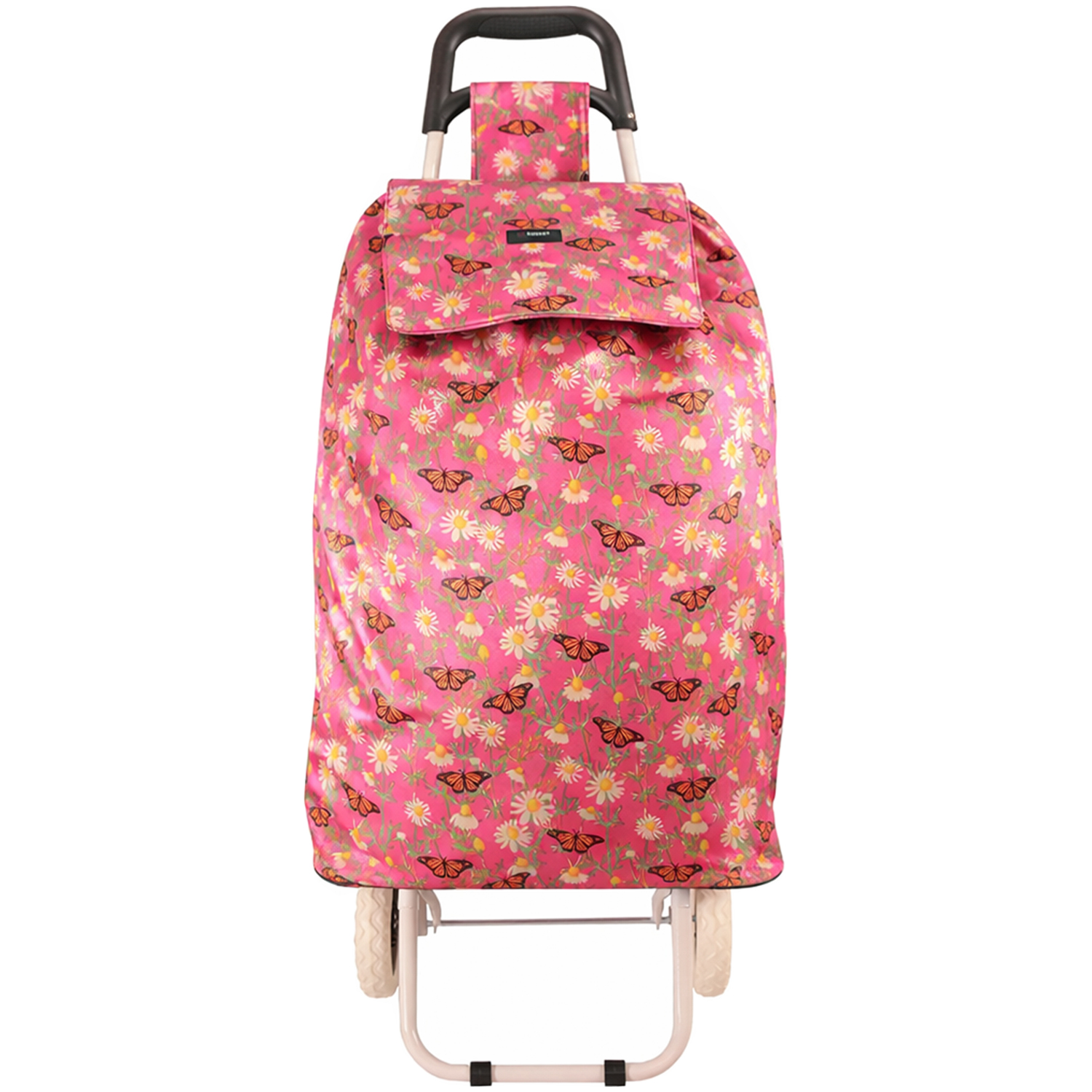 MS-001 FLOWER AND BUTTERFLY PATTERN PINK TWO WHEEL SHOPPING CART