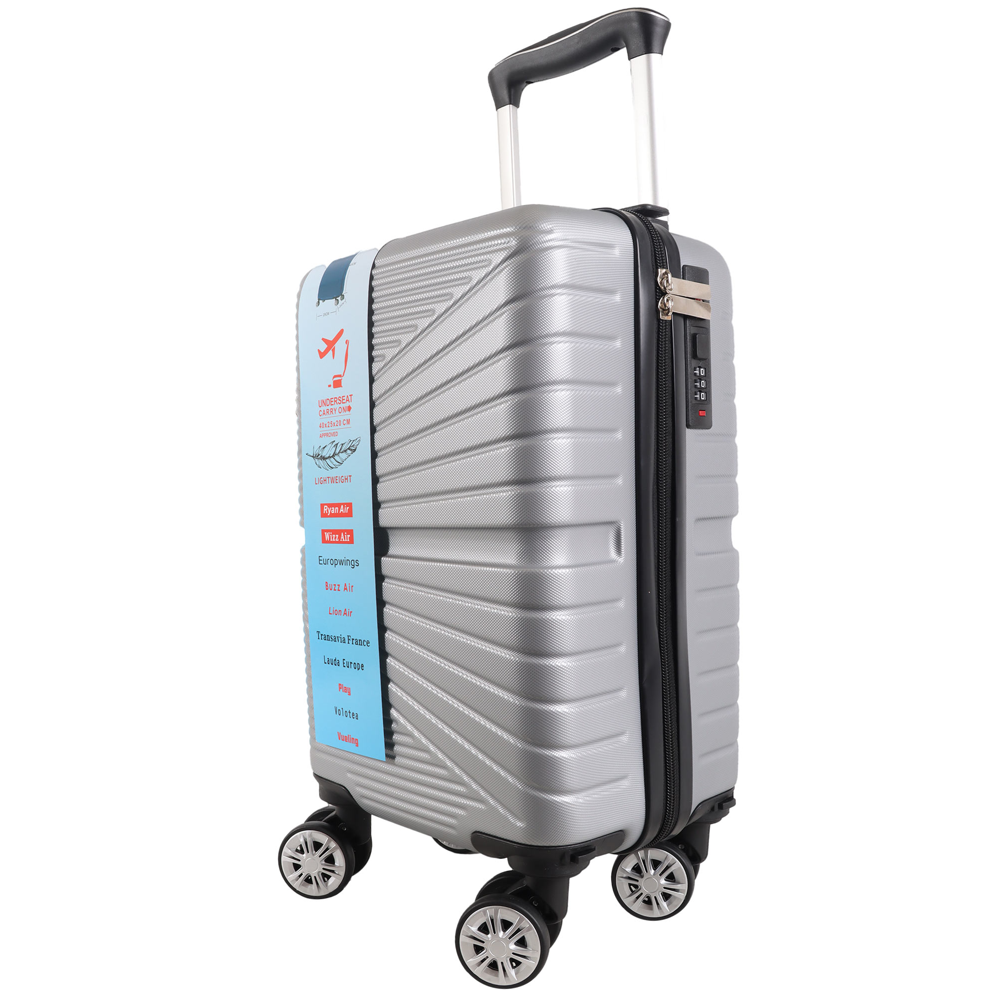 T-HC-US-1611 SILVER SET OF 2 RYAN AIR, ALSO OVERHEAD CABIN-SIZED TROLLEY SUITCASE