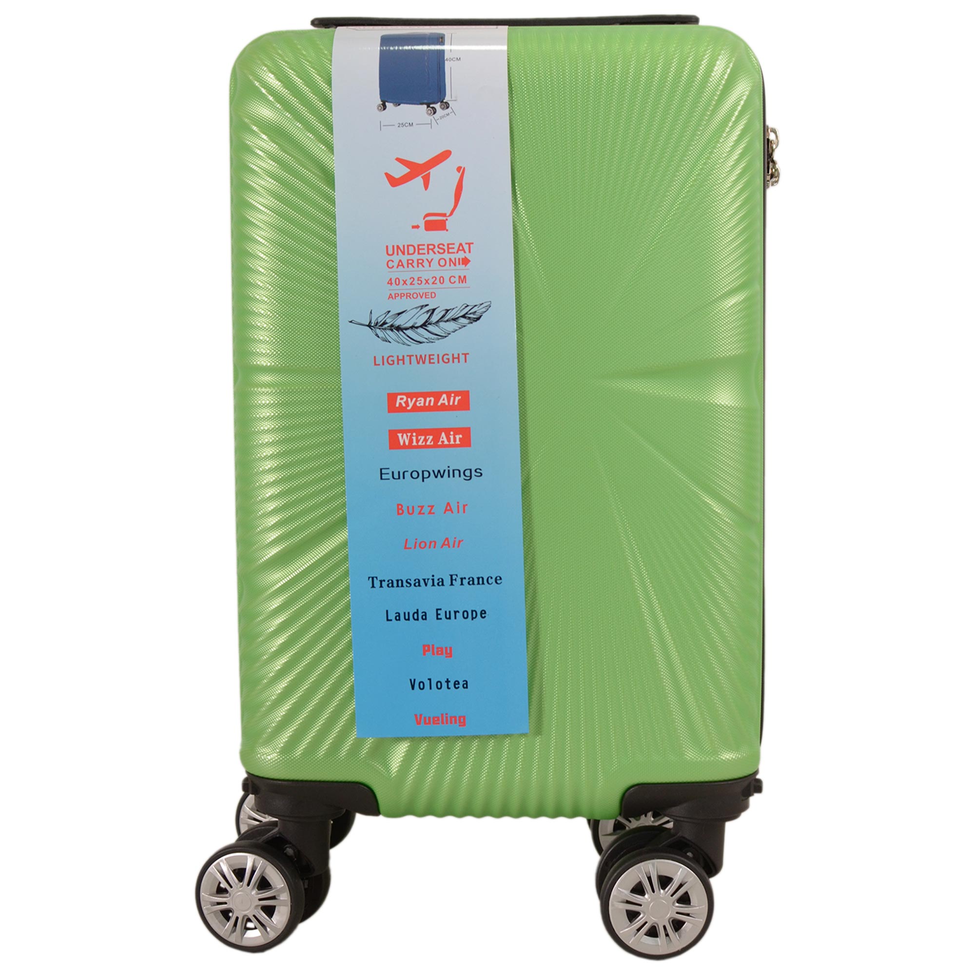 New 4-WHEEL 360-degree hard case Suitcase Cabin TrolleyRyan Air, Wizz Air, Europwings, Buzz Air, Lion Air, Transavia France-4x 360 DEGREE SPINNER WHEELS-FULLY LINED-IT HAS DETACHABLE WHEELS THAT CAN EASILY BE TAKEN OUT AND CLEANED.-CABIN SIZE APPROVED-LIGHTWEIGHT-PERFECT GLIDE SYSTEM-STRONG AND DURABLE-PUSH-BUTTON TROLLEY SYSTEM-CROSS BELT INTERIOR-SCRATCH-RESISTANT OUTER SHELL-COMBINATION LOCK-REMOVABLE WHEELS